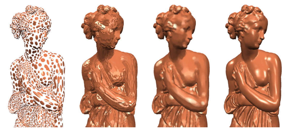 Point-based geometry representations allow to process and visualize 3D models without the need for costly surface reconstruction or triangulation (Kobbelt & Botsch, 2004). They are therefore a flexible and efficient alternative to traditional spline-based or mesh-based surface representations.